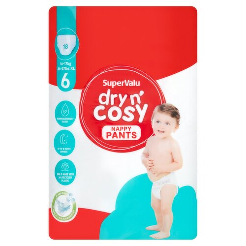 As soon as your baby starts to move, he or she is a little champion who rolls, stretches and climbs to discover the world. Your baby needs our BEST EVER leak-proof Baby-Dry Nappy Pants: their Stop & Protect helps prevent leaks at the back, their 360° stretchy waistband adapts to your baby's body to help prevent gaps and leaks and double leg cuffs help prevent leaks around the legs, for up to 12h of all-around leakage protection. Our plus sizes offer you extra reassurance at night or whenever you need more absorbency. Like all of our nappy pants, Pampers Baby-Dry Nappy Pants are also easy to change even when your baby is moving around: just one pull to put on, tear the sides for easy removal, roll up and secure with the tape for easy disposal. Just like you, Pampers put your baby’s safety first: Pampers Baby-Dry Nappy Pants are dermatologically tested and contain 0% EU perfume allergens (as regulated in the EU Cosmetics Regulation No 1223/2009). They are approved by the dermatologists of the Skin Health Alliance and tested and certified according to Standard 100 by OEKO-TEX. Use with Pampers baby wipes. Want to know more about the components Pampers uses? Visit pampers.co.uk